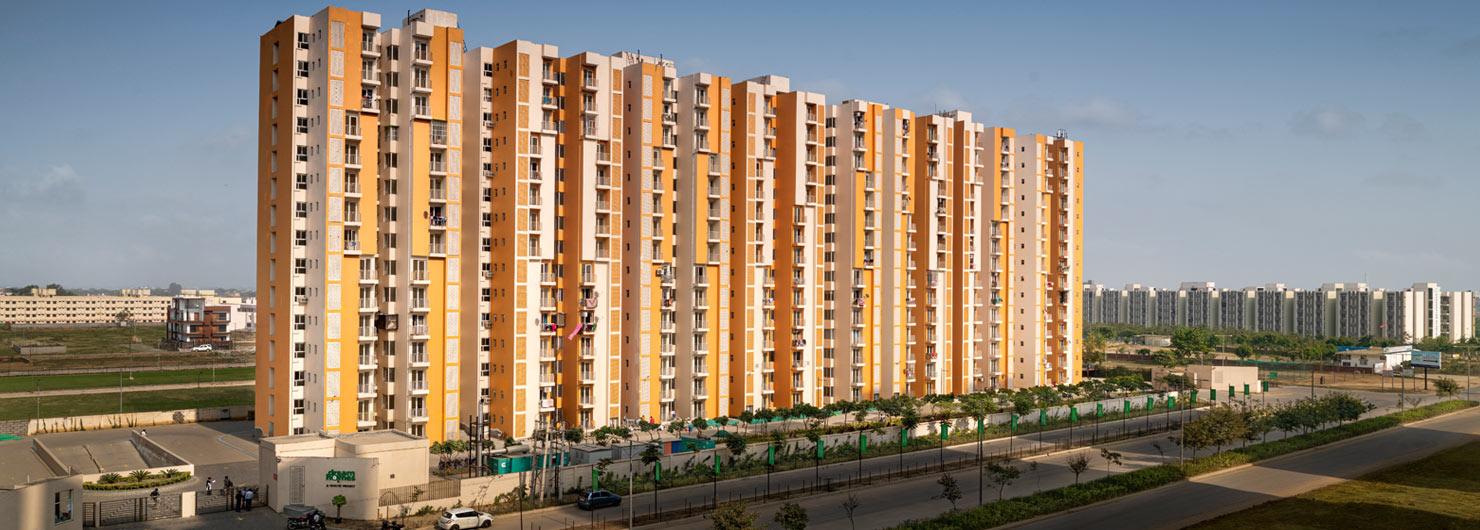 The Dream Home is a condo in Wave City, Ghaziabad. The land around it was left untouched, and the surrounding apartments are built from sustainable materials.